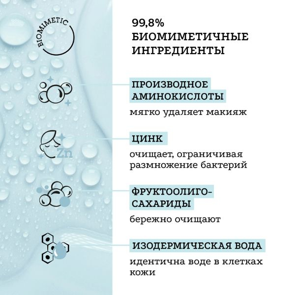 - Биомиметичная формула - чистые ингредиенты, созданные с учётом особенностей кожи, обеспечивают идеальную совместимость и оптимальную переносимость.