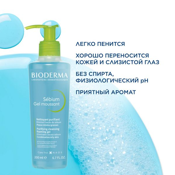 Очищающий гель для умывания Sebium от Bioderma Sebium с физиологическим pH подходит для очищения комбинированной, жирной и проблемной кожи лица и тела. Средство помогает улучшить качество себума и со временем сократить количество воспалений. Мягко, но эффективно очищает кожу, не раздражает и не пересушивает. Хорошо переносится слизистой глаз.