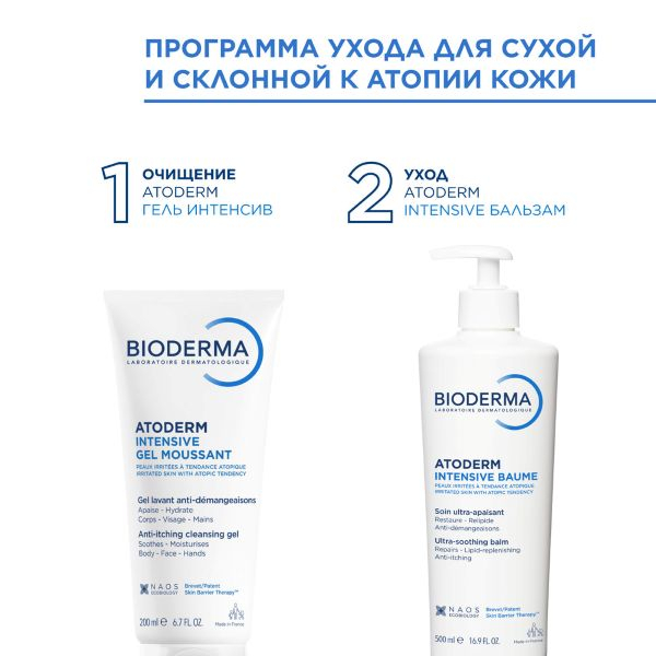 Мягкое очищающее средство Атодерм гель Интенсив подходит для очень сухой раздраженной атопичной чувствительной кожи лица и тела. Очищает, восстанавливает липиды, защищает, уменьшает ощущение дискомфорта, успокаивает раздражение, улучшает барьерную функцию кожи.