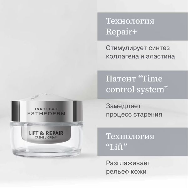 LIFT & REPAIR – это средство для коррекции морщин и повышения упругости кожи, обеспечивающее заметный лифтинг-эффект. Морщины разглаживаются, контур лица корректируется. Крем возвращает четкость овала лица, сокращает морщины и заломы, сохраняя результат надолго, а также выравнивает цвет кожи. Гладкая текстура обладает мгновенным подтягивающим эффектом.