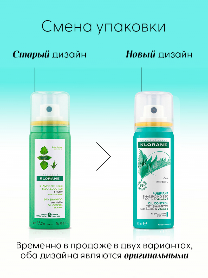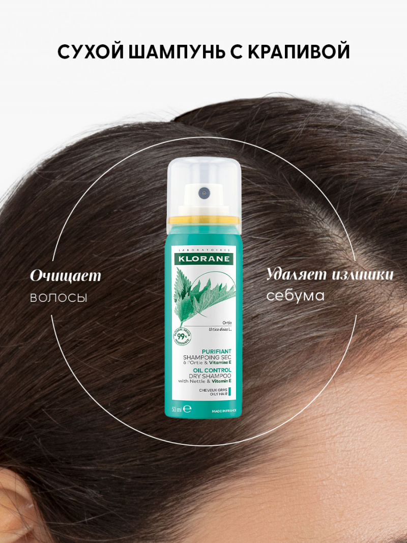 KLORANE Сухой шампунь с крапивой и витамином Е для жирных воло, 50 мл
