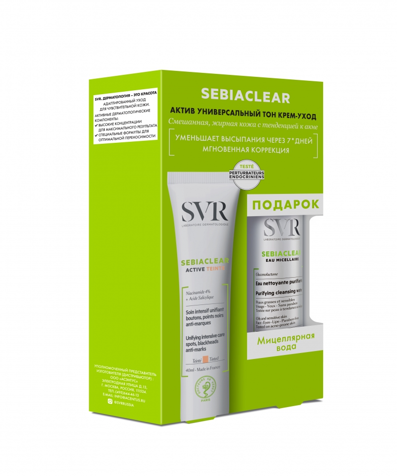 SVR СЕБИАКЛИР НАБОР "АКТИВ Универсальный тональный крем-уход, 40 мл + Мицеллярная вода, 75 мл"
