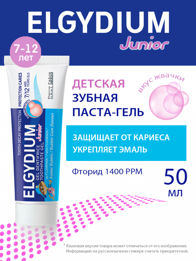 ELGYDIUM Детская зубная паста со вкусом жвачки, от 7 до 12 лет, 50 мл