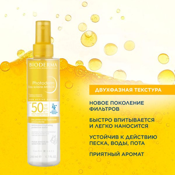 BIODERMA ФОТОДЕРМ Солнцезащитный антиоксидантный увлажняющий спрей SPF50, 200 мл