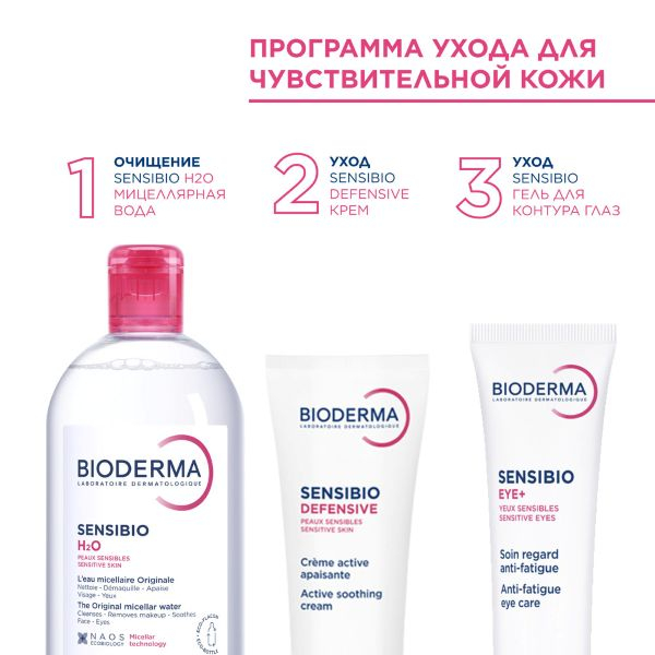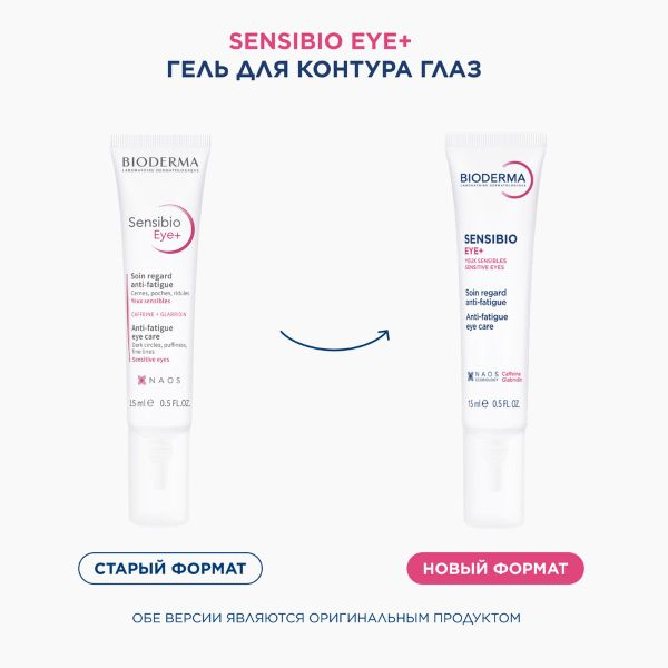 BIODERMA СЕНСИБИО Eye+ Увлажняющий гель для контура глаз против темных кругов, морщин и отеков, 15 мл
