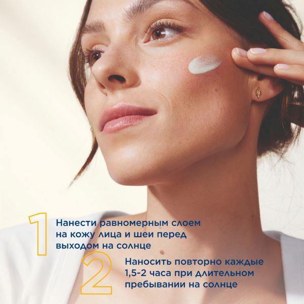 Наносить плотным слоем на кожу лица и шеи за 20 минут до выхода на улицу. Обновлять каждые полтора-два часа при длительном пребывании на солнце.